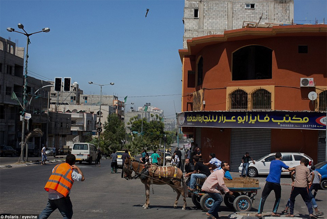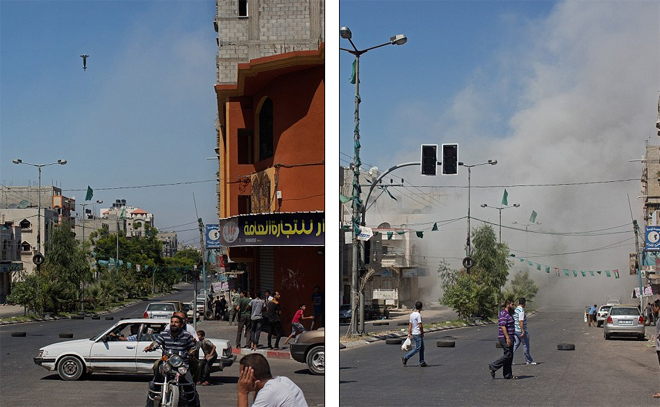 Ισραηλινοί πύραυλοι πέφτουν σε πολυκατοικία στη Γάζα. Δεκάδες Παλαιστίνιοι, ανάμεσά τους παιδιά, κοιτούν αποσβολωμένοι τους πυραύλους να «πετούν» πάνω από τα κεφάλια τους!
