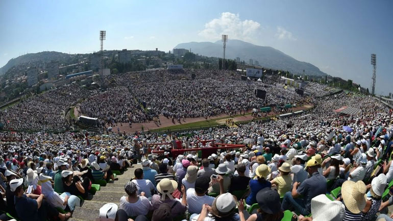 Χιλιάδες καθολικοί συγκεντρώθηκαν στην πρωτεύουσα της Βοσνίας για να υποδεχτούν τον πάπα Φραγκίσκο, ο οποίος χοροστάτησε σε λειτουργία στο στάδιο του Σεράγεβο, μία πόλη με μουσουλμανικό κατά βάση πληθυσμό.