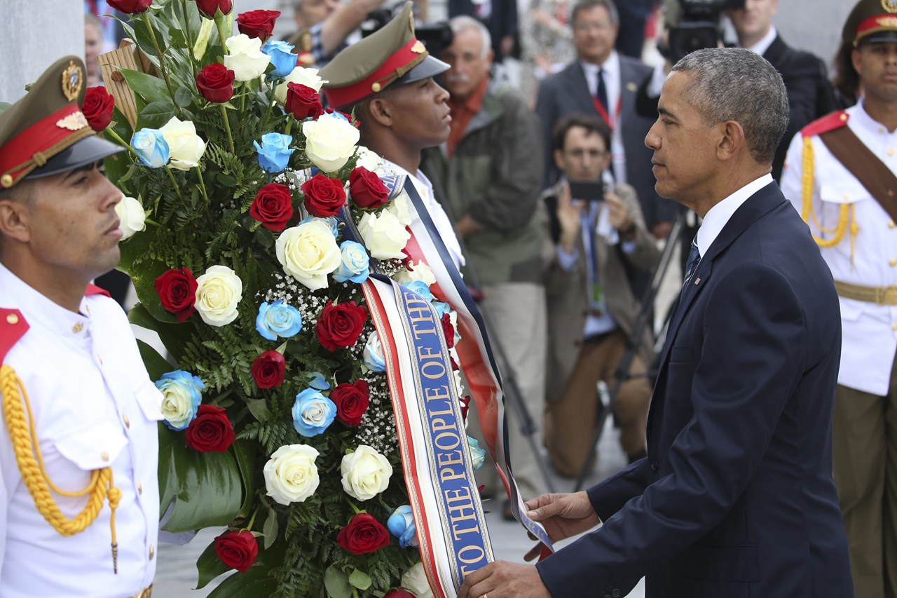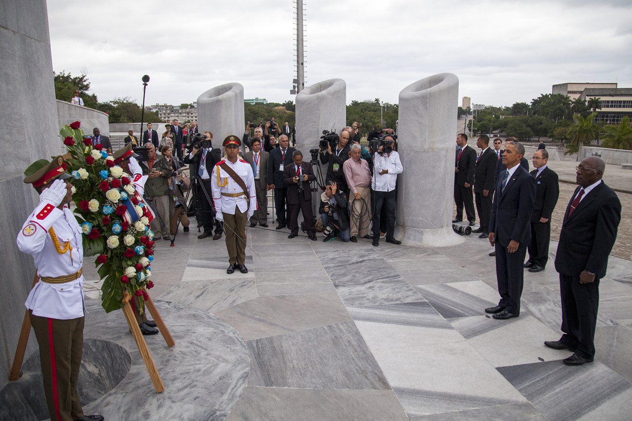 Τη Δευτέρα, ο πρόεδρος των ΗΠΑ απέτισε στην Πλατεία της Επανάστασης φόρο τιμής στον Χοσέ Μαρτί, τον ήρωα της ανεξαρτησίας της Κούβας. Ο Αμερικανός πρόεδρος κατέθεσε στεφάνι στο άγαλμα του ποιητή, πολιτικού και μαχητή και κατόπιν υπέγραψε το βιβλίο επισκεπτών.