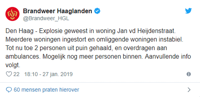Σε ανακοίνωσή της, η πυροσβεστική υπηρεσία της Χάγης αναφέρει ότι επτά άνθρωποι χρειάστηκε να διακομιστούν στα πλησιέστερα νοσοκομεία.