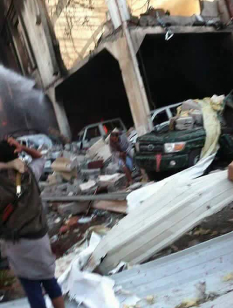 Φωτογραφίες γκρεμισμένων και φλεγόμενων κτηρίων έχουν κάνει τον γύρο του Διαδικτύου μέσω των μέσων κοινωνικής δικτύωσης. Οι πρώτες πληροφορίες αναφέρουν ότι η έκρηξη προκλήθηκε από αεροπορική επιδρομή.