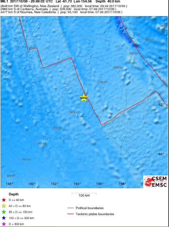 Το επίκεντρο του σεισμού ορίζεται σε απόσταση 2649 χιλιομέτρων της πρωτεύουσας Ουέλλιγκτον της Νέας Ζηλανδίας.