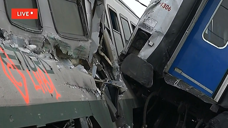 Σε ερασιτεχνικό βίντεο καταγράφονται οι πρώτες στιγμές αμέσως μετά τον εκτροχιασμό της αμαξοστοιχίας: