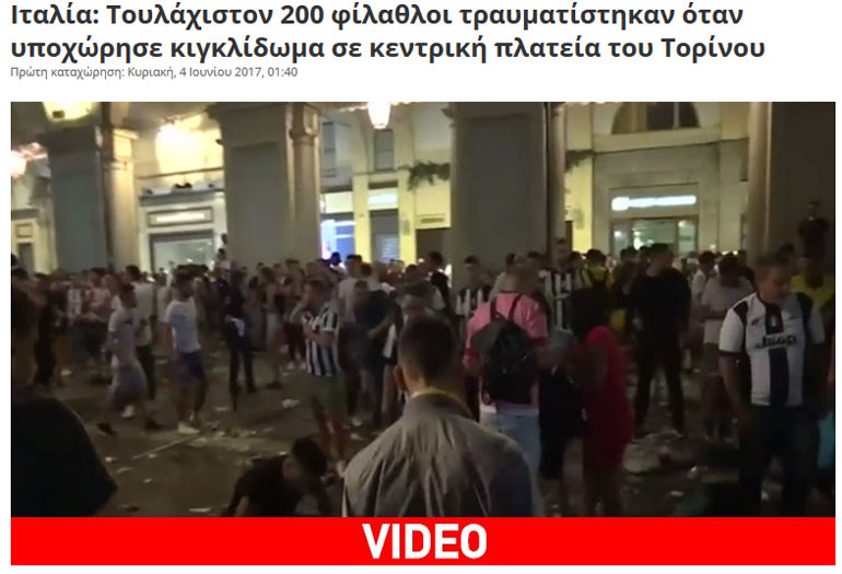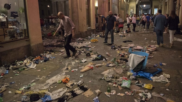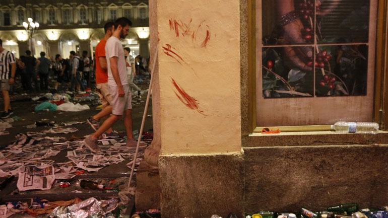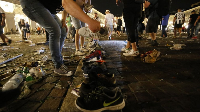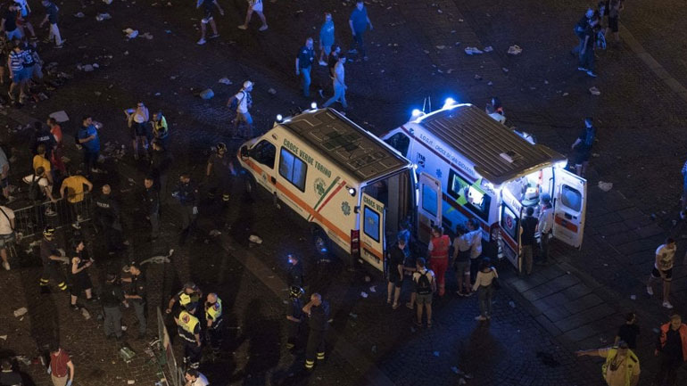 Συνολικά 1.400 άνθρωποι τραυματίστηκαν στην κεντρική πλατεία Σαν Κάρλο του Τορίνου, όπου παρακολουθούσαν τον τελικό του Champions League, Γιουβέντους-Ρεάλ Μαδρίτης, σε γιγαντοοθόνη, όπως αναφέρει στην ηλεκτρονική της έκδοση η εφημερίδα La Repubblica.