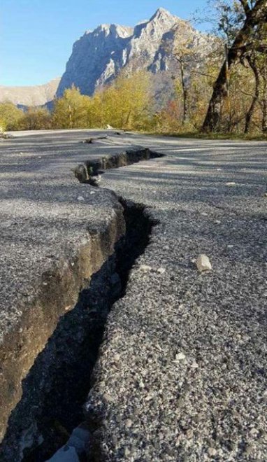 Βάσει δορυφορικών φωτογραφιών, ερευνητές του CNR και του Εθνικού Ινστιτούτου Γεωφυσικής και Ηφαιστειολογίας (INGV) ανακάλυψαν πως η παραμόρφωση του γήινου φλοιού σ’ αυτή την ορεινή περιοχή εκτείνεται σε 130 τετραγωνικά χιλιόμετρα. Η μετατόπιση του εδάφους που φθάνει κατά τόπους έως και 70 εκατοστά έχει σημειωθεί στην περιφέρεια του Καστελούτσο, κοντά στη Νόρτσια, σε απόσταση έξι χιλιομέτρων από το επίκεντρο του σεισμού, σύμφωνα με ανακοίνωση του CNR.