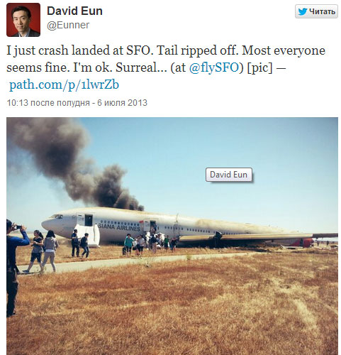 Όπως έγραψε πάντως στο Twitter ένας από τους επιβάτες, ο κ. David Eun, οι περισσότεροι από όσους ήταν στο αεροσκάφος είναι ήρεμοι, ενώ τα σωστικά συνεργεία βοηθούν τους τραυματίες.