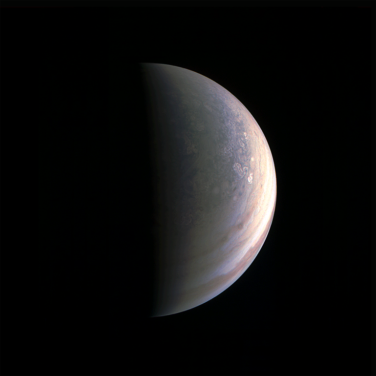 «Η πρώτη εικόνα που έχουμε από τον βόρειο πόλο του Δία, δεν μοιάζει με τίποτε που έχουμε δει ή φανταστεί έως τώρα», δήλωσε ο επικεφαλής επιστήμων της αποστολής Σκοτ Μπόλτον του Νοτιοδυτικού Ινστιτούτου Ερευνών στο Σαν Αντόντιο του Τέξας. «Ο βόρειος πόλος είναι πιο μπλε από τα άλλα μέρη του πλανήτη και μαίνονται εκεί πολλές καταιγίδες. Δεν διακρίνονται καθόλου οι συνήθεις διαμήκεις ζώνες και λωρίδες, έτσι η όλη εικόνα δύσκολα αναγνωρίζεται ως Δίας. Βλέπουμε επίσης ενδείξεις σκιών που δημιουργούν τα νέφη», πρόσθεσε.