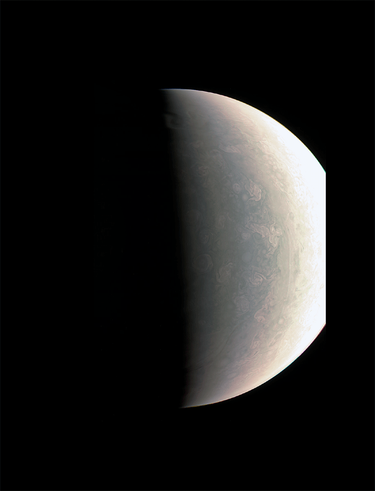 «Η πρώτη εικόνα που έχουμε από τον βόρειο πόλο του Δία, δεν μοιάζει με τίποτε που έχουμε δει ή φανταστεί έως τώρα», δήλωσε ο επικεφαλής επιστήμων της αποστολής Σκοτ Μπόλτον του Νοτιοδυτικού Ινστιτούτου Ερευνών στο Σαν Αντόντιο του Τέξας. «Ο βόρειος πόλος είναι πιο μπλε από τα άλλα μέρη του πλανήτη και μαίνονται εκεί πολλές καταιγίδες. Δεν διακρίνονται καθόλου οι συνήθεις διαμήκεις ζώνες και λωρίδες, έτσι η όλη εικόνα δύσκολα αναγνωρίζεται ως Δίας. Βλέπουμε επίσης ενδείξεις σκιών που δημιουργούν τα νέφη», πρόσθεσε.