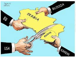 H Σερβία βέβαια αντιμετωπίζει το θέμα διαφορετικά: Δέκα χρόνια μετά την απόσχιση της επαρχίας του Κοσσυφοπεδίου θέλει να επανακτήσει τον έλεγχο στην περιοχή αυτή. Πριν από λίγες μέρες η φιλοκυβερνητική σερβική εφημερίδα Politika έγραφε στο πρωτοσέλιδό της: «Τα Τίρανα και η Πρίστινα δημιουργούν τη Μεγάλη Αλβανία».