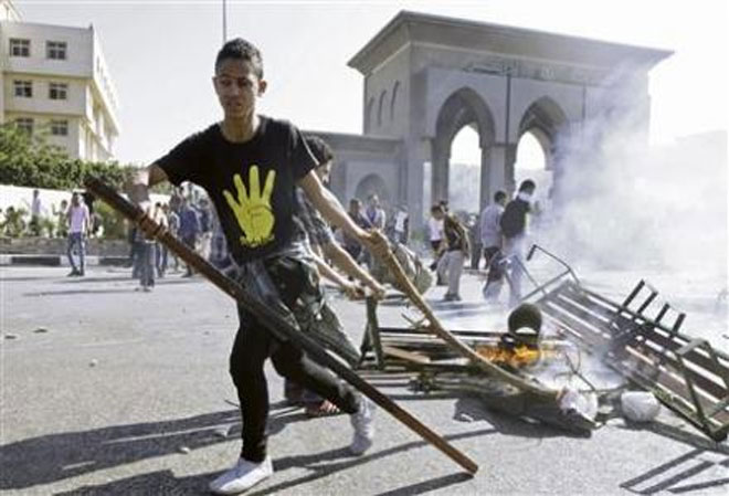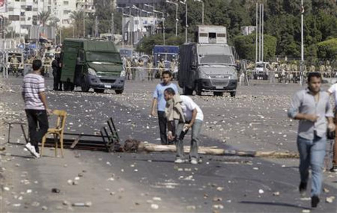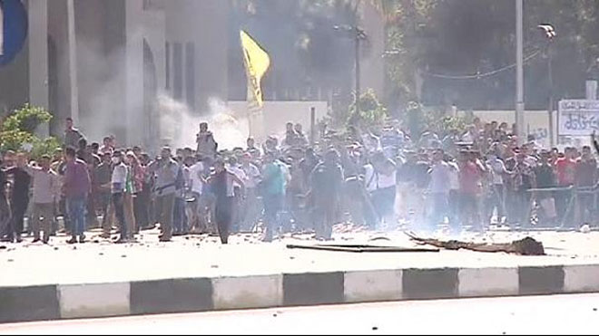 Οι φοιτητές του πανεπιστημίου αλ-Αζχάρ μπλόκαραν τον κεντρικό δρόμο που οδηγεί στο χώρο του ιδρύματος στο Κάιρο και άρχισαν να εκσφενδονίζουν πέτρες όταν προσέγγισαν το σημείο οι δυνάμεις ασφαλείας.