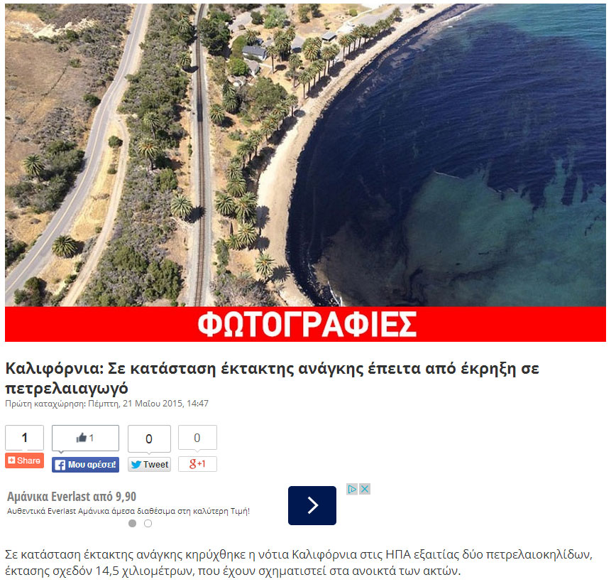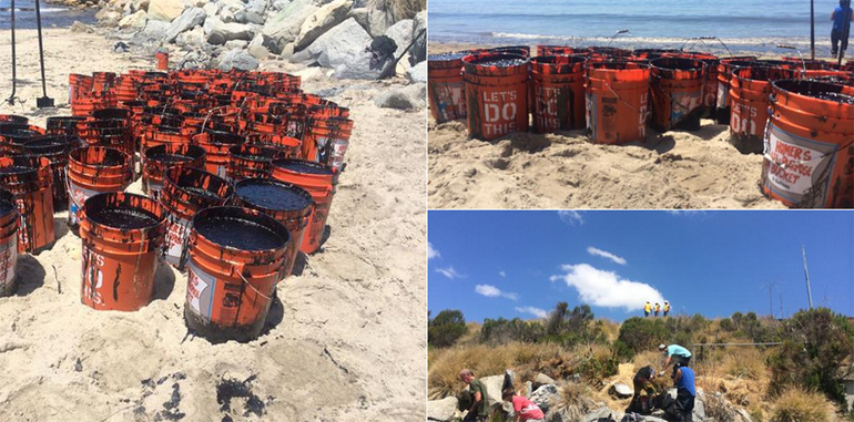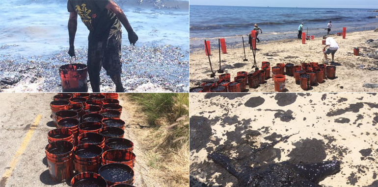 Περίπου 300 εθελοντές καθαρίζουν καθημερινά τις ακτές στο νότιο τμήμα της Καλιφόρνια στις ΗΠΑ μετά τη διαρροή περίπου 100.000 γαλονιών πετρελαίου στη θάλασσα, η οποία σημειώθηκε ύστερα από ισχυρή έκρηξη σε αγωγό την Τρίτη.