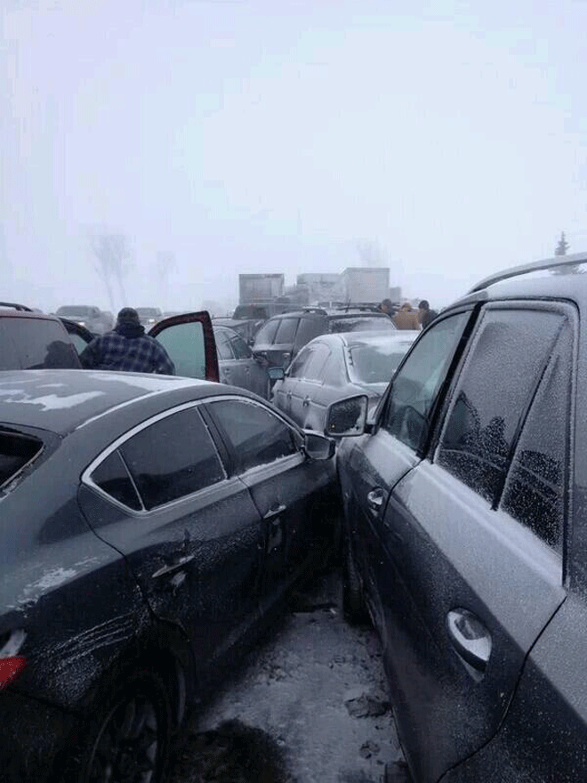 Η επαρχιακή αστυνομία έσπευσε στον αυτοκινητόδρομο 89 μη μπορώντας να πιστέψει το μέγεθος της καραμπόλας, η οποία ήταν το αποτέλεσμα της ολισθηρότητας του δρόμου από τον πάγο, αλλά και της περιορισμένης ορατότητας.