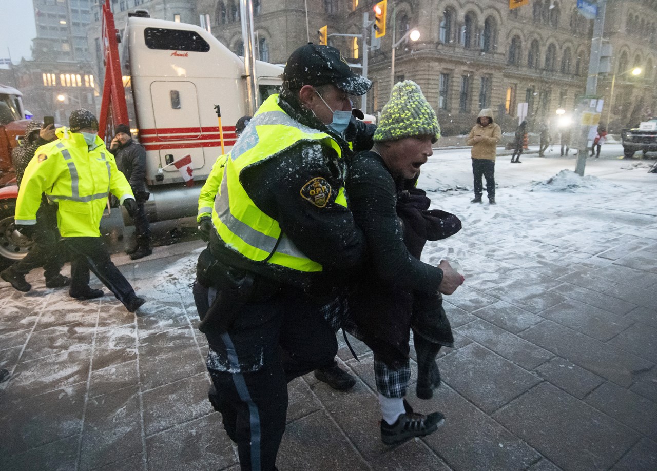 Η αστυνομία του Καναδά προχώρησε αργά το βράδυ της Πέμπτης στις πρώτες συλλήψεις διοργανωτών του κινήματος κατά των υγειονομικών μέτρων που έχουν κλείσει δρόμους στην Οτάβα εδώ και τρεις εβδομάδες.