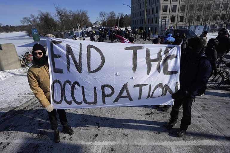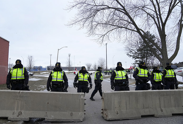 Παρά τη δικαστική εντολή για τον τερματισμό της κατάληψης και την επιβολή της κατάστασης έκτακτης ανάγκης από την επαρχία του Οντάριο, η αστυνομία δεν έχει καταφέρει να διαλύσει εντελώς το πλήθος και να ξεκινήσει εκ νέου η κυκλοφορία μεταξύ των συνόρων.