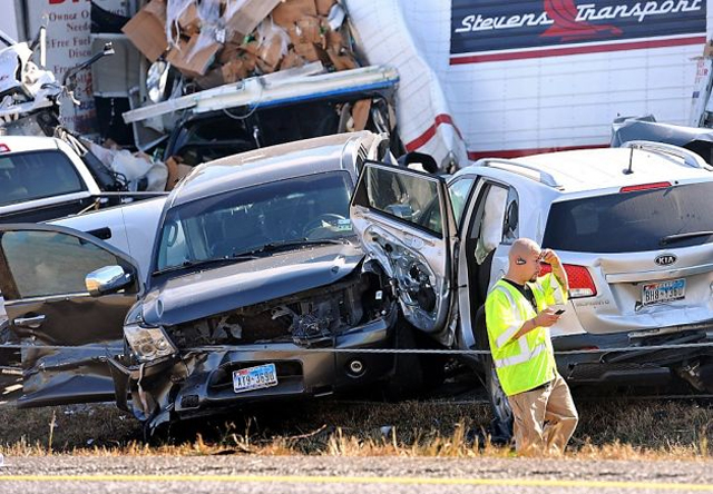 Περίπου 100 οχήματα συγκρούστηκαν μεταξύ τους, με περισσότερους από 50 ανθρώπους να μεταφέρονται στο νοσοκομείο, εκ των οποίων οι οκτώ νοσηλεύονται σε κρίσιμη κατάσταση.