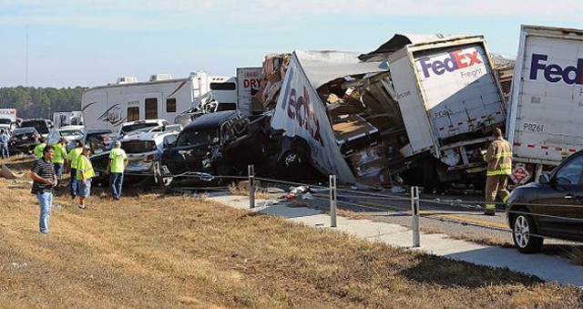 Όπως μετέδωσε το αμερικανικό τηλεοπτικό δίκτυο ABC, το τροχαίο δυστύχημα οφείλεται πιθανότατα στην έντονη ομίχλη που επικρατούσε εκείνη την ώρα, η οποία εμπόδιζε την ορατότητα των οδηγών.