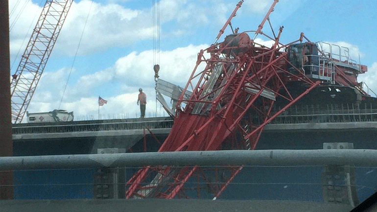 Σύμφωνα με όσα ανέφεραν αμερικανικά ΜΜΕ, ο γερανός κατέρρευσε την ώρα που τεχνικοί εργάζονταν στο σημείο και είχε ως αποτέλεσμα τμήμα του να πέσει στη γέφυρα προκαλώντας κυκλοφοριακή συμφόρηση.