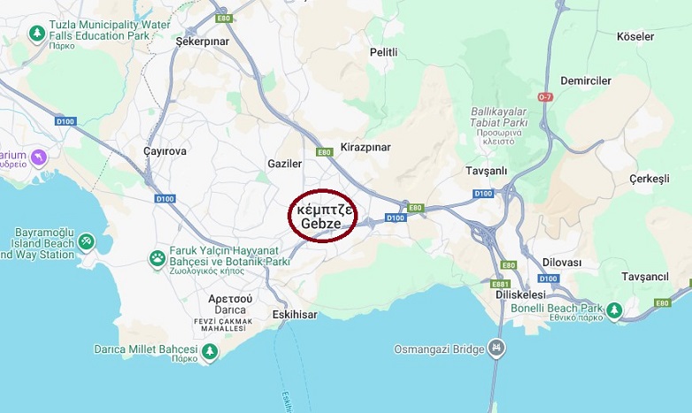 Η θέση στο χάρτη της Τουρκίας της πόλης Γκέμπτζε όπου έγινε η κατάρρευση της πολυκατοικίας