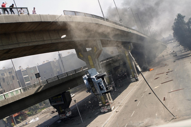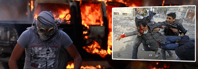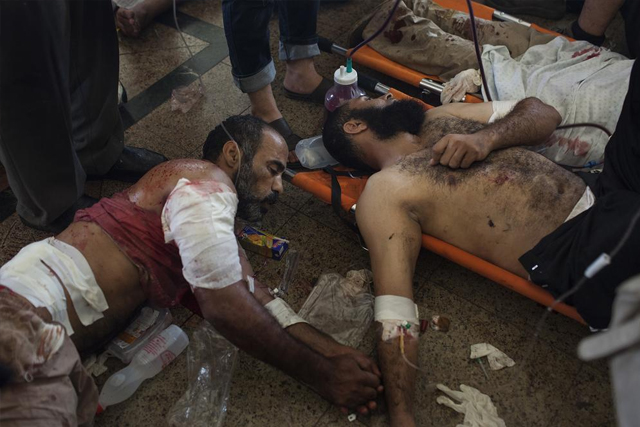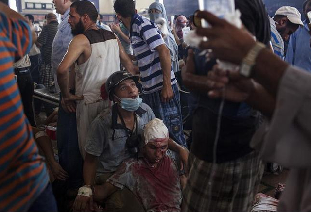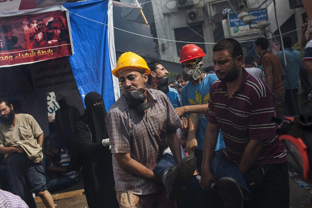 Στο κέντρο του Καΐρου η κατάσταση ξέφυγε από κάθε έλεγχο, όταν αστυνομικοί επιχείρησαν να διαλύσουν δύο καταυλισμούς μελών της Μουσουλμανικής Αδελφότητας. Καμένα αυτοκίνητα και κατεστραμμένα καταστήματα  συνέθεσαν το πολεμικό σκηνικό, την ίδια στιγμή που η ατμόσφαιρα ήταν αποπνικτική λόγω των χημικών που χρησιμοποίησε η Αστυνομία. Συνεχείς είναι οι καταγγελίες για αθρόες συλλήψεις ηγετικών στελεχών της Μουσουλμανικής Αδελφότητας από αστυνομικούς και στρατιώτες, ενώ τέλος δεν έχουν οι αναφορές για χρήση αληθινών πυρών κατά άοπλων διαδηλωτών.
