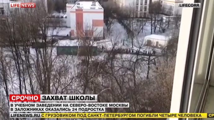 Σύμφωνα με τις πρώτες πληροφορίες, ο ένοπλος κρατά ομήρους περίπου 29 μαθητές ηλικίας 15 ετών στο βιολογικό εργαστήριο του γυμνασίου.