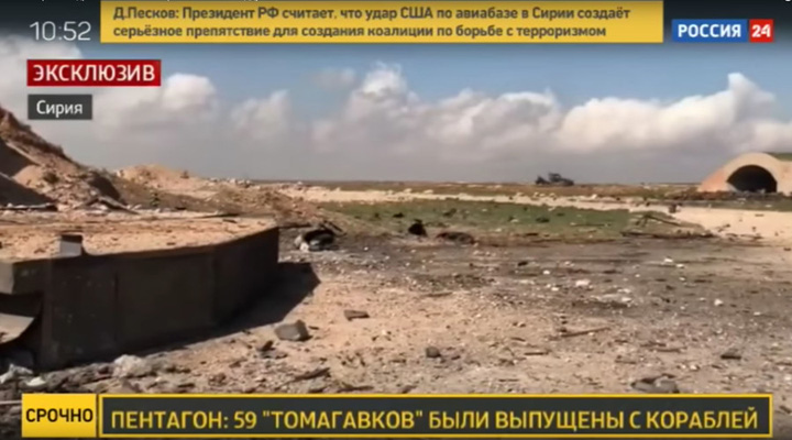 Σε παιχνίδι επικοινωνιακού χαρακτήρα, οι Ρώσοι διά στόματος εκπροσώπου του υπουργείου Άμυνας ανακοίνωσαν νωρίς το μεσημέρι της Παρασκευής ότι από τους συνολικά 59 Τόμαχοκ που εκτοξεύθηκαν από τα αμερικανικά πυραυλοφόρα οι 23 έπληξαν τη βάση. Όσο για τους υπόλοιπους 36, σύμφωνα με την ίδια πηγή, «η τύχη τους παραμένει άγνωστη».
