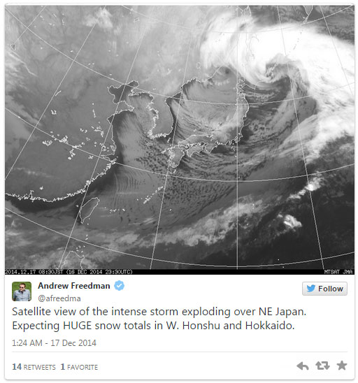 Μια καταιγίδα στον Ειρηνικό Ωκεανό, που την τελευταία εβδομάδα έστειλε πολύ βροχή και χιόνι στην Ιαπωνία, βρέθηκε στο δρόμο του αεροπλάνου και προκάλεσε σοβαρές αναταράξεις την ώρα της πτήσης.