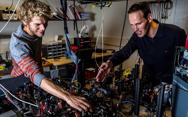​Μια νέα μελέτη που δημοσιεύεται στο κορυφαίο περιοδικό Nature αναφέρει πώς δύο ηλεκτρόνια που απείχαν 1,3 χιλιόμετρα μεταξύ τους βρισκόμενα σε διαφορετικά εργαστήρια του Πανεπιστημίου της Ντελφτ συμπεριφέρονταν σαν να ήταν «συνεννοημένα» από πρινΗ κβαντομηχανική προβλέπει ότι ένα σωματίδιο μπορεί να βρίσκεται σε διαφορετικές θέσεις ταυτόχρονα, και «κλειδώνει» τελικά σε μια συγκεκριμένη θέση μόνο αν κάποιος μπει στον κόπο να το παρατηρήσει.