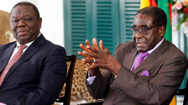 (Από αριστερά προς τα δεξιά: Morgan Tsvangirai και Robert Mugabe)
