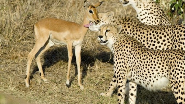 Εκείνο αφού αρχικά του ανταπέδωσε την τρυφερή κίνηση, χαϊδεύοντας την αντιλόπη στο κεφάλι και γλείφοντάς την στη συνέχεια αποφάσισε να της ορμήσει και να τη φάει.