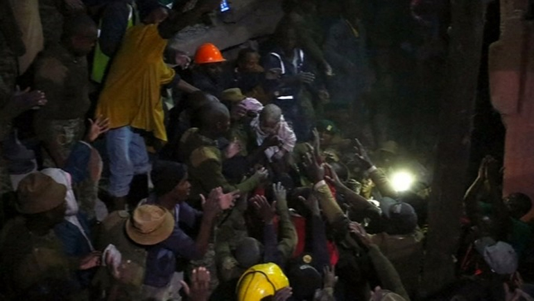 Ένα κοριτσάκι ενός έτους ανέσυραν ζωντανό σήμερα το πρωί οι διασώστες από τα συντρίμμια εξαώροφου κτηρίου στην πρωτεύουσα της Κένυας.