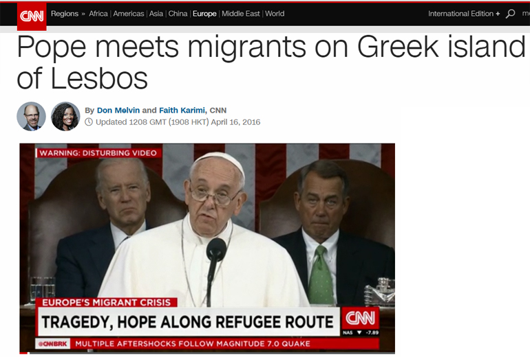 Κεντρική είδηση στη διεθνή ειδησεογραφία είναι η επίσκεψη του πάπα Φραγκίσκου στη Λέσβο.