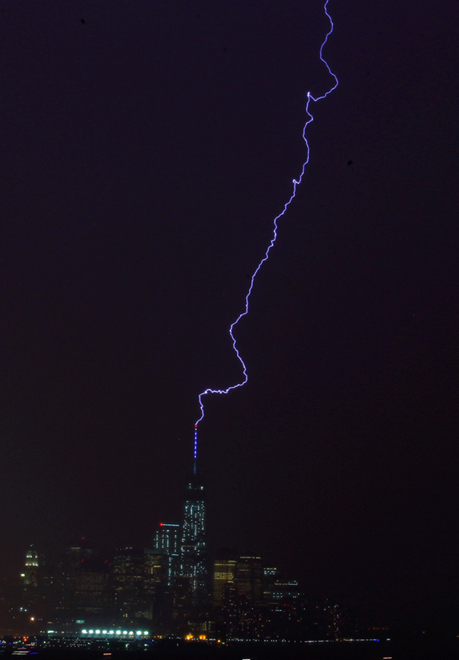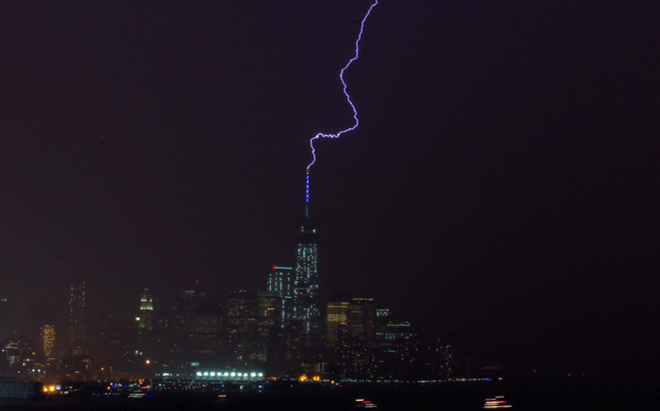 Ο κεραυνός έβαλε… στόχο το One World Trade Center. Το κτίριο-μεγαθήριο στο Μανχάταν «έλαμψε» όταν έπεσε πάνω του χθες το βράδυ.