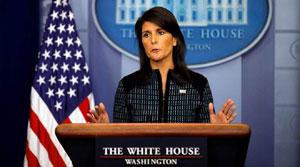 Η Ουάσινγκτον βρίσκεται άλλο ένα βήμα πίσω στην απόπειρά της να επιτύχει να θέσει υπό την επιρροή της τη Συρία. Προσπάθεια, όμως, που δεν δείχνει να σταματά. «Οι ΗΠΑ δεν θα είναι ικανοποιημένες όσο ο πρόεδρος της Συρίας Μπασάρ αλ Άσαντ βρίσκεται στην εξουσία» δήλωσε η Αμερικανίδα εκπρόσωπος στον ΟΗΕ Nikki Haley, σχολιάζοντας τη μεγάλη προσπάθεια αποκλιμάκωσης που έχουν επιτύχει από κοινού Ρωσία, Ιράν και Τουρκία (χωρίς τη συμμετοχή των ΗΠΑ).