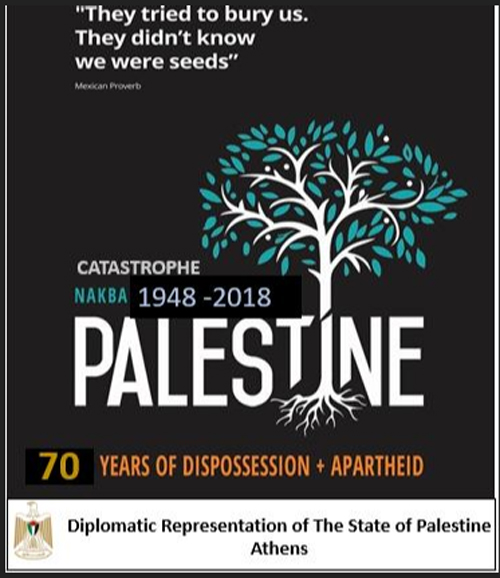 Η ανακοίνωση της Πρεσβείας της Παλαιστίνης της Αθήνας για τη σημερινή επέτειο της «Nakba»: