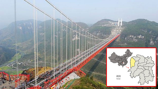 Η γέφυρα Άιζαϊ βρίσκεται στην διοικητική περιφέρεια του Ξιάνγκ ξι και έχει μήκος 1.176 μέτρα και ύψος 336 μέτρα. Θεωρείται η μεγαλύτερη κρεμαστή γέφυρα στον πλανήτη.