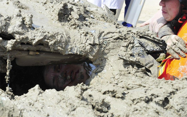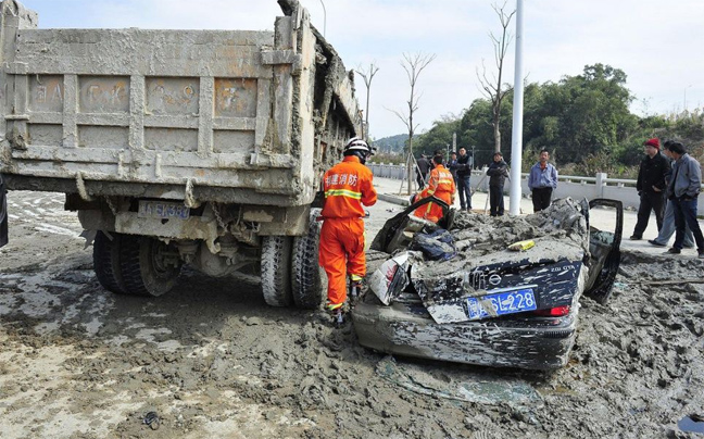 Από θαύμα σώθηκε η 35χρονη Yin Min Tai, η οποία εγκλωβίστηκε στο όχημά της στην περιοχή Fuzhou της Κίνας, αφότου ένα φορτηγό γέμισε με τσιμέντο όλο της το όχημα. Η άτυχη γυναίκα έμεινε για 40 λεπτά κάτω από τόνους υγρού τσιμέντου, το οποίο διέλυσε και την οροφή του αυτοκινήτου της.