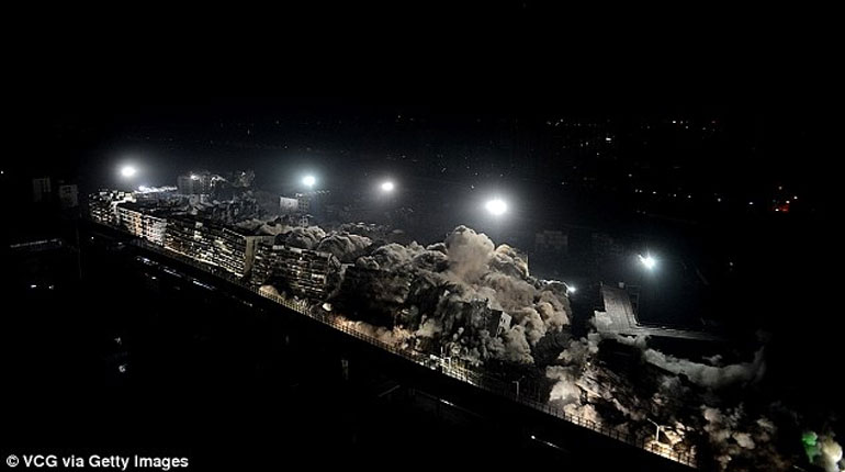 Δέκα δευτερόλεπτα χρειάστηκαν για την ελεγχόμενη κατεδάφιση 19 κτηρίων στην περιοχή Γιουχάν της Κίνας.