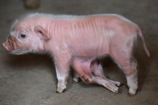 Ένα ιδιαίτερα χαριτωμένο μικρό χοιριδίο γεννήθηκε στην κινέζικη επαρχία Chongqing το οποίο φαινόταν λίγο διαφορετικό από τα άλλα. «Όταν άρχισα να το καθαρίζω την ώρα που γεννήθηκε, μου φάνηκε ασυνήθιστο» δήλωσε ο Κινέζος αγρότης και ιδιοκτήτης του, Tan Yongxiu. Μετά από προσεκτικότερη εξέταση ο αγρότης δεν μπορούσε να πιστέψει στα μάτια του όταν είδε ότι είχε, όχι ένα, αλλά δύο επιπλέον ζεύγη ποδιών κάτω από την κοιλιά του.