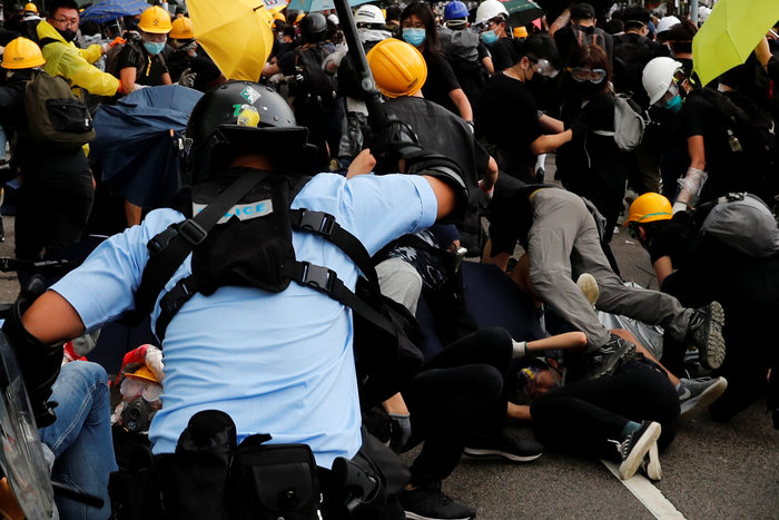 Η αστυνομία του Χονγκ Κονγκ έριξε σήμερα δακρυγόνα στους διαδηλωτές στην οικονομική συνοικία Σέντραλ στην καρδιά της πρώην βρετανικής αποικίας, όπως και σε δύο πανεπιστημιουπόλεις, για να διαλύσει τις συγκεντρώσεις ακτιβιστών υπέρ της δημοκρατίας, καθώς, σύμφωνα με εκπρόσωπό της, η βία έχει οδηγήσει πλέον την υπό κινεζική κυριαρχία πόλη στα «πρόθυρα πλήρους κατάρρευσης».