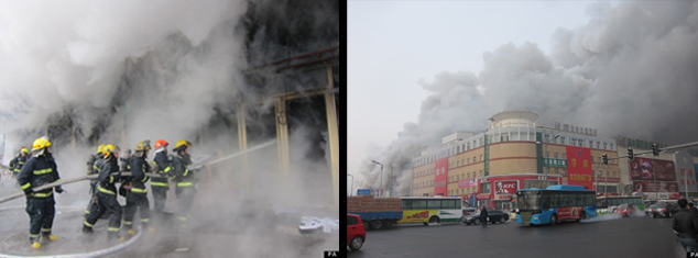 Η πυρκαγιά εκδηλώθηκε, κάτω από αδιευκρίνιστες συνθήκες, στις 09.00 το πρωί, τοπική ώρα (03.00 τα ξημερώματα ώρα Ελλάδας) στην πόλη Χαρμπίν, πρωτεύουσα της επαρχίας Χεϊλόνγκ Τζιάνγκ και έλαβε γρήγορα μεγάλες διαστάσεις λόγω των εύφλεκτων υλικών που υπήρχαν μέσα στους χώρους των περισσότερων καταστημάτων.