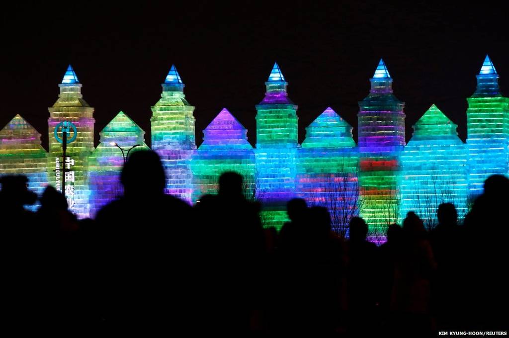 Περίτεχνα γλυπτά, τεράστιες μορφές και γιγαντιαίες αντιγραφές διάσημων κτηρίων και διεθνών συμβόλων, φτιαγμένα από πάγο και φωτισμένα αριστοτεχνικά συνθέτουν ένα παραμυθένιο σκηνικό στην πόλη Χαρμπίν της Κίνας.