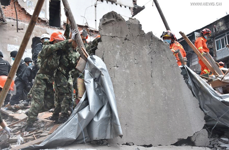 Μέχρι στιγμής από τα συντρίμμια έχουν ανασυρθεί οκτώ σοροί, ενώ πέντε άνθρωποι έχουν καταφέρει να βγουν ζωντανοί, αναφέρει το Xinhua, διευκρινίζοντας ότι οι διασώστες εξακολουθούν να αναζητούν τυχόν εγκλωβισμένους στα ερείπια.