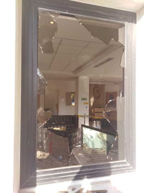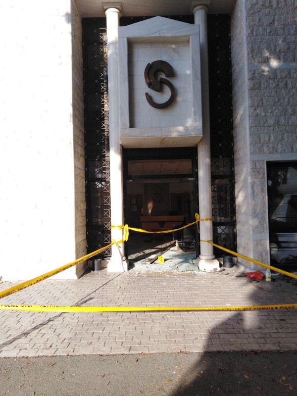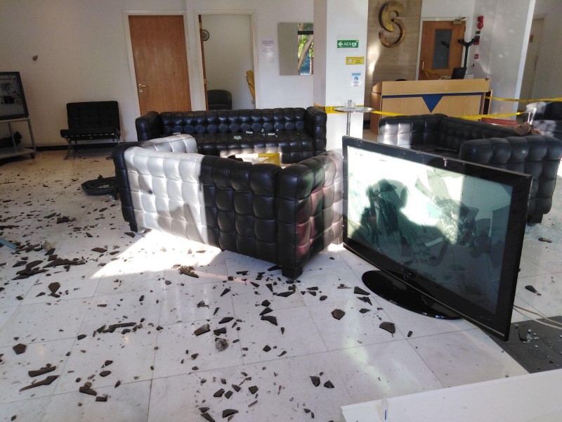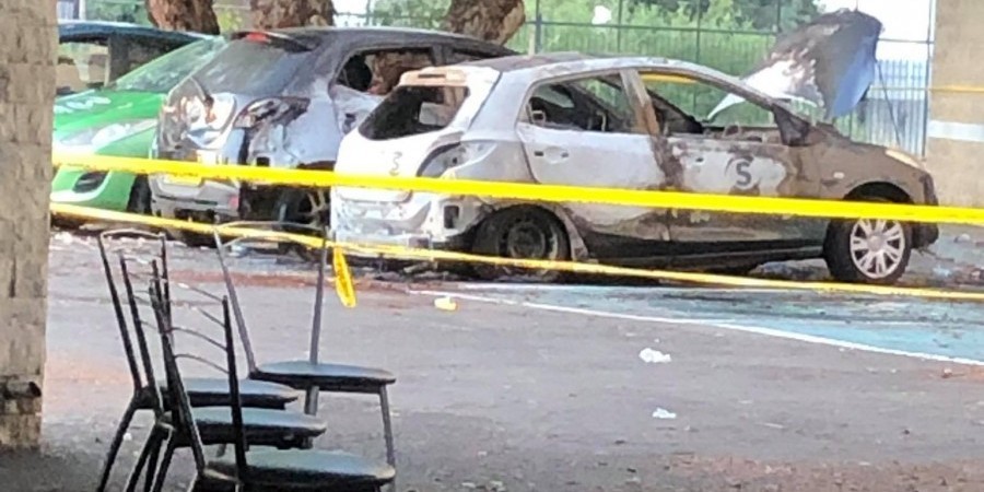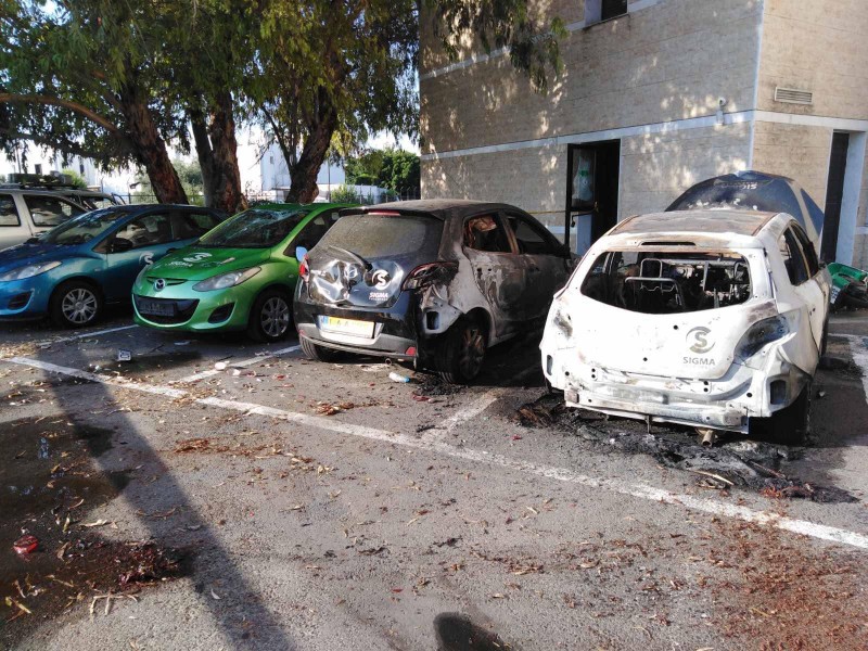 Οι εικόνες της επόμενης μέρας θυμίζουν πόλεμο, με καμένα αμάξια και μεγάλες ζημιές στο κτήριο.