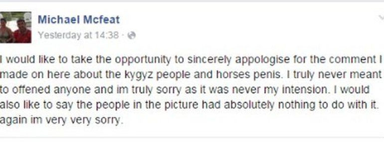 Η αστυνομία συνέλαβε τον Michael Mcfeat, εργαζόμενο της καναδικής μεταλλευτικής εταιρείας Centerra Gold, ως ύποπτο για ρατσιστικό μίσος, όταν τα επίμαχα σχόλια που έκανε στη σελίδα του στο Facebook προκάλεσαν απεργία στο ορυχείο.