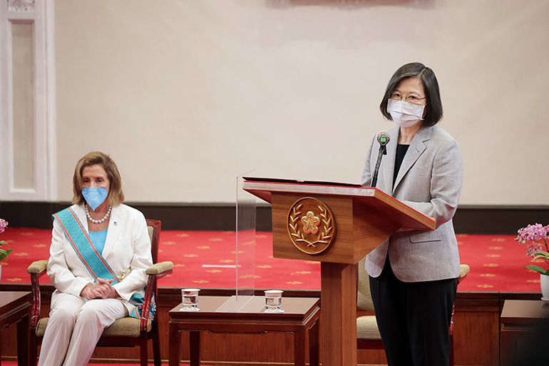 «Παρά τις εσκεμμένα αυξημένες στρατιωτικές απειλές, η Ταϊβάν δεν θα κάνει πίσω. Θα συνεχίσουμε να υπερασπιζόμαστε τη δημοκρατία», είπε η κυρία Τσάι κατά τη διάρκεια εκδήλωσης στην Ταϊπέι με παρούσα την κυρία Πελόζι.