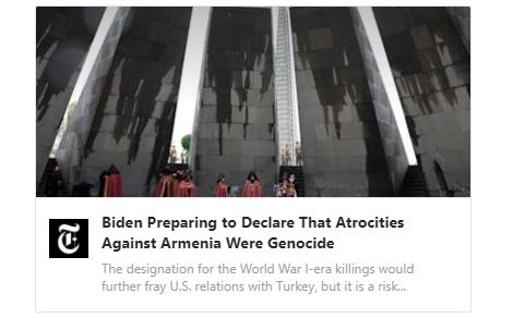 Μετά την έκδοση ταξιδιωτικής οδηγίας από το State Department, το βράδυ της Τετάρτης προς Πέμπτη 22 Απριλίου, η οποία περιέχει μια πρωτοφανή για τις αμερικανοτουρκικές σχέσεις αναφορά στον κίνδυνο σύλληψης Αμερικανών πολιτών σε τουρκικό έδαφος ανά πάσα στιγμή και για λόγους πολιτικής σκοπιμότητας χωρίς στοιχεία, τα αμερικανικά ΜΜΕ την Πέμπτη το πρωί αναφέρονται στην προγραμματιζόμενη επίσημη αναγνώριση της γενοκτονίας των Αρμενίων από τον Τζο Μπάιντεν το Σάββατο 24 Απριλίου.