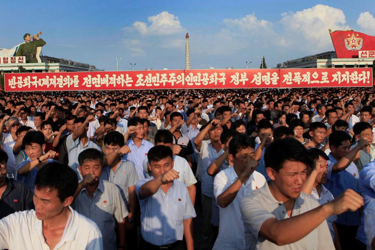 Χιλιάδες Βορειοκορεάτες συγκεντρώθηκαν στην πλατεία Κιμ Ιλ Σουνγκ της πρωτεύουσας και σηκώνοντας τις γροθιές τους φώναζαν συνθήματα υπέρ του ηγέτη της Β. Κορέας.