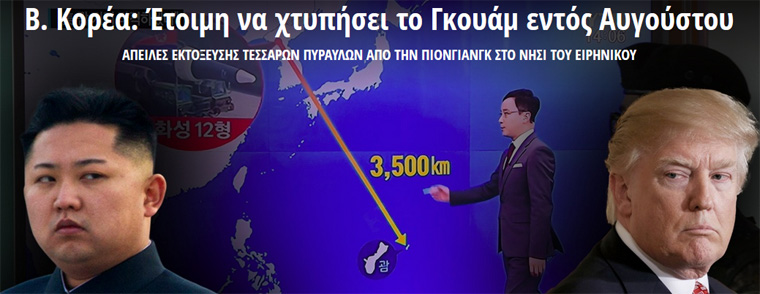 Ο Τραμπ ανακοίνωσε ότι η προηγούμενη απειλή του για «φωτιά και οργή» ίσως δεν ήταν αρκετά σκληρή, καθώς οι συνθήκες της κρίσης μεταξύ της Ουάσινγκτον και της Πιονγκγιάνγκ επιδεινώνονται σε φραστικό επίπεδο, σχολιάζει η εφημερίδα «The New York Times».