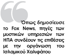 Όπως δημοσίευσε το Fox News, πηγές των μυστικών υπηρεσιών των ΗΠΑ συνδέουν τις επιθέσεις με την οργάνωση του Ισλαμικού Χαλιφάτου.
