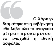 Ο πρωθυπουργός του Καναδά Στίβεν Χάρπερ στο διάγγελμα που απηύθυνε από άγνωστη τοποθεσία το βράδυ της Τετάρτης για τα βίαια επεισόδια υπογράμμισε ότι «δεν θα φοβηθούμε από τις “κατάπτυστες” επιθέσεις, που στοίχισαν τις ζωές δύο στρατιωτών αυτήν την εβδομάδα».